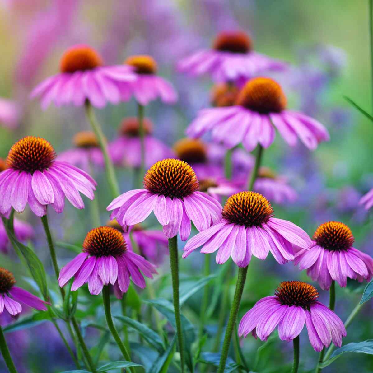 Purple Coneflowers are hardy perennials that attract pollinators while effortlessly reseeding each year.