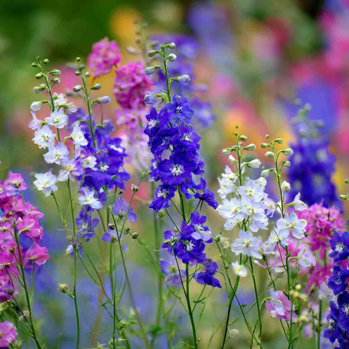 Larkspur features tall spikes of pastel blossoms that self-sow freely in the right conditions. Their delicate blooms create a cottage-garden feel that’s both natural and enchanting.