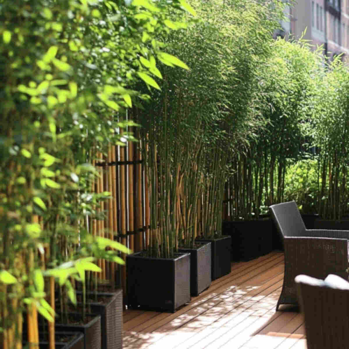 Compact bamboo varieties are great for Shady Balcony Planting Garden Ideas because they tolerate partial shade while offering height and privacy. The tall, slender stalks create a calm, natural screen.