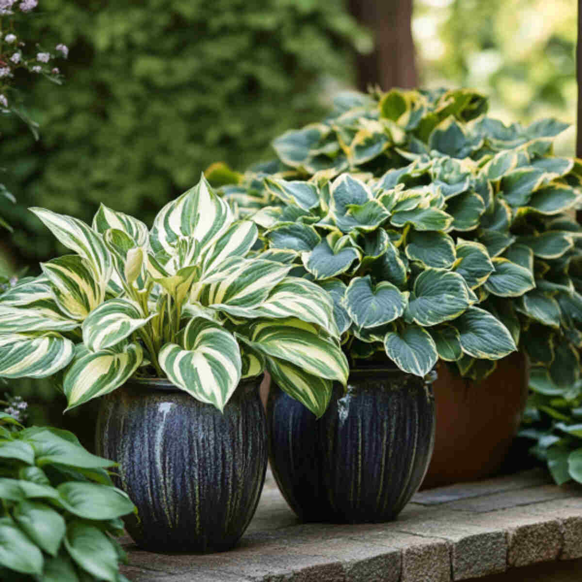 2. Hostas in Decorative Pots