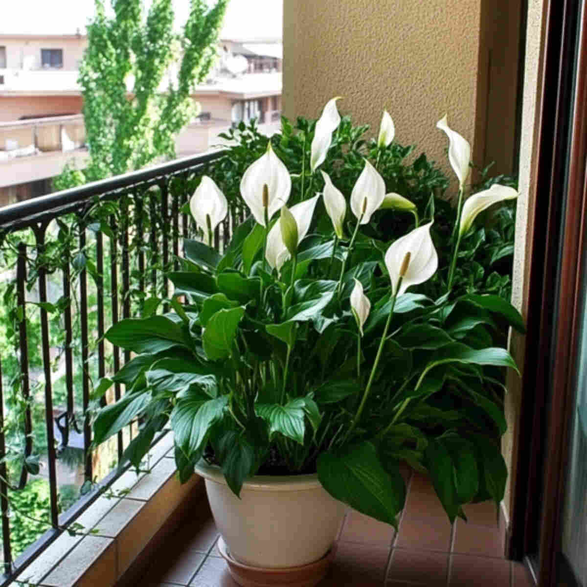 Peace lilies love shade and reward you with elegant white blooms, which suits Shady Balcony Planting Garden Ideas perfectly. Grouping them in corners makes dark spots look soft and inviting.