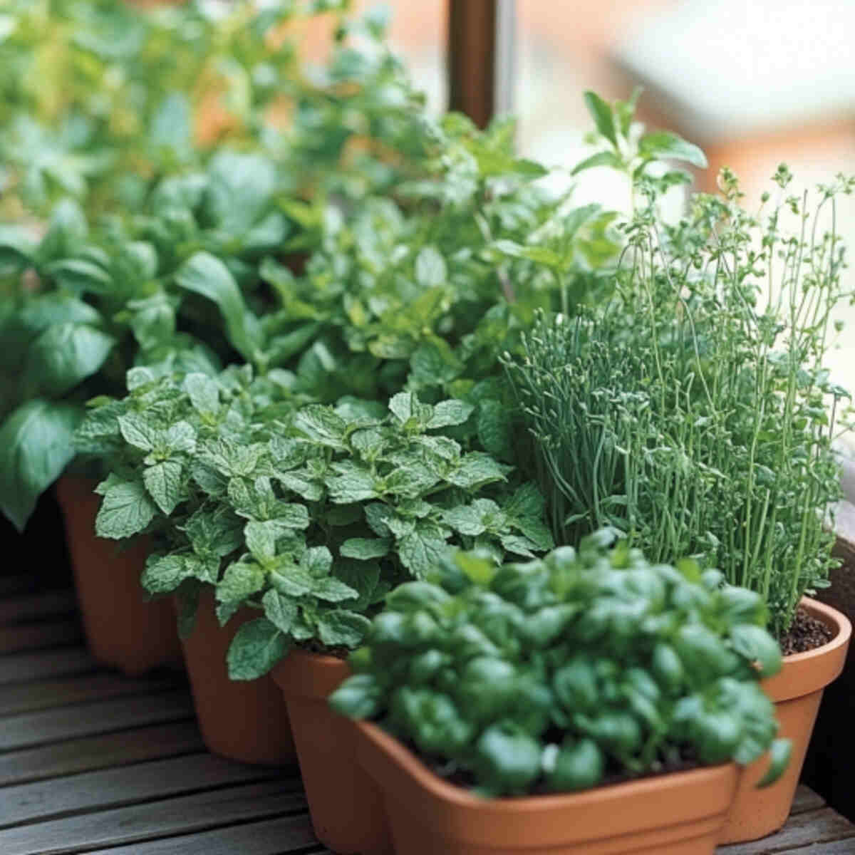 Mint and chives are hardy herbs that grow well without direct sun, supporting practical Shady Balcony Planting Garden Ideas.