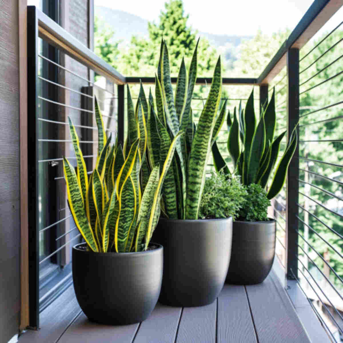 Snake plants thrive on neglect and low light, making them ideal for Shady Balcony Planting Garden Ideas.