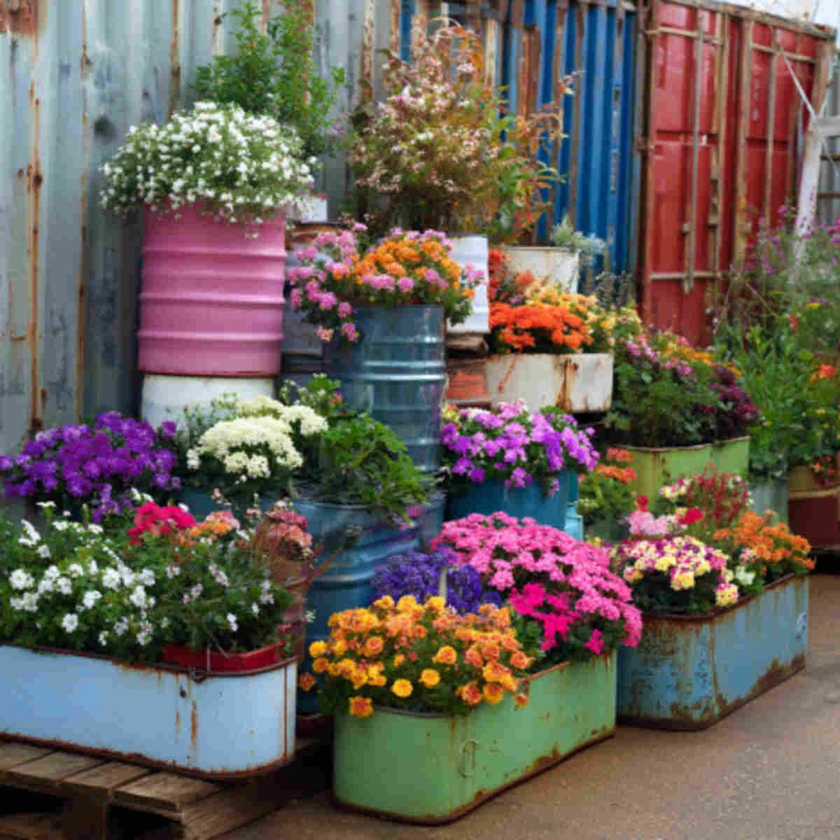 Transform old buckets, crates, or tins into creative flower planters. This eco-friendly approach adds charm while promoting sustainability.