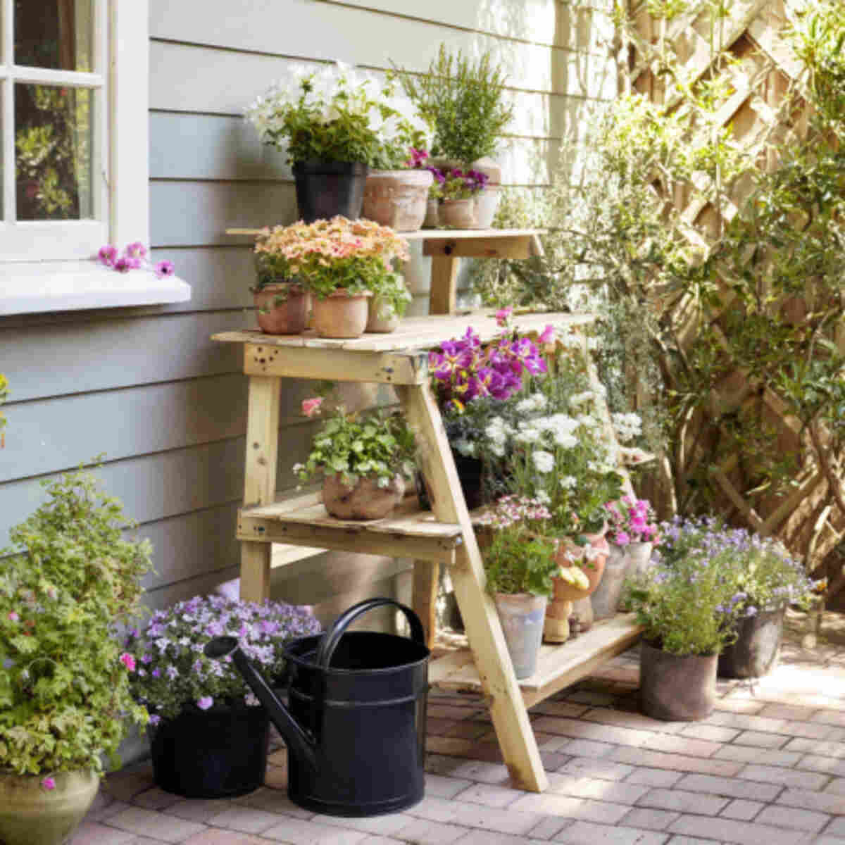 A tiered flower stand allows you to display multiple flowers vertically using shelves or plant racks.