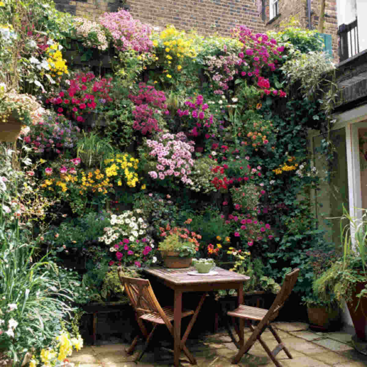 A vertical flower wall garden is a creative way to bring greenery to tight spaces in small urban yards. You can grow colorful flowers on hanging panels or stacked planters attached to a wall or fence.