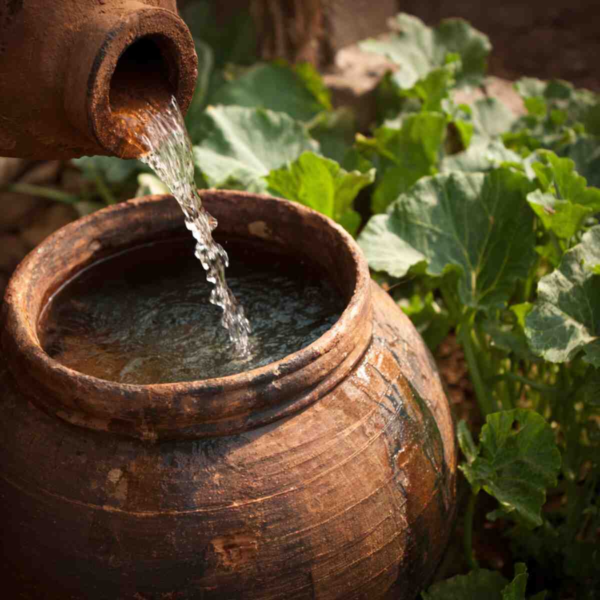 Unglazed pots are buried in the soil and filled with water, which seeps out gradually as the soil dries. This method ensures deep root hydration and eliminates water waste on the surface.