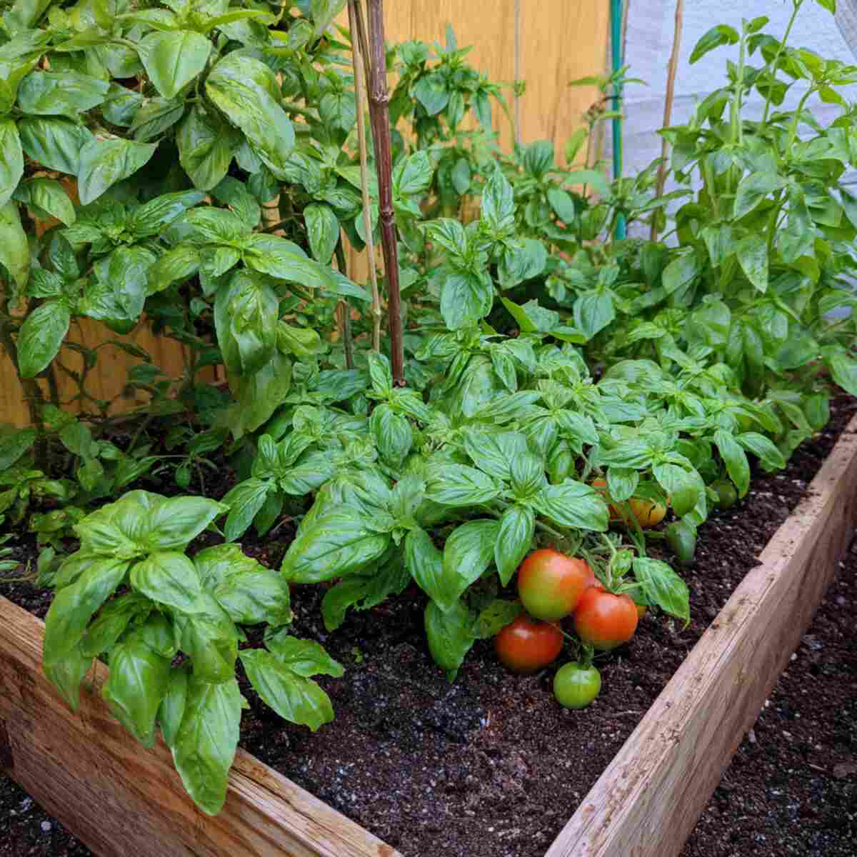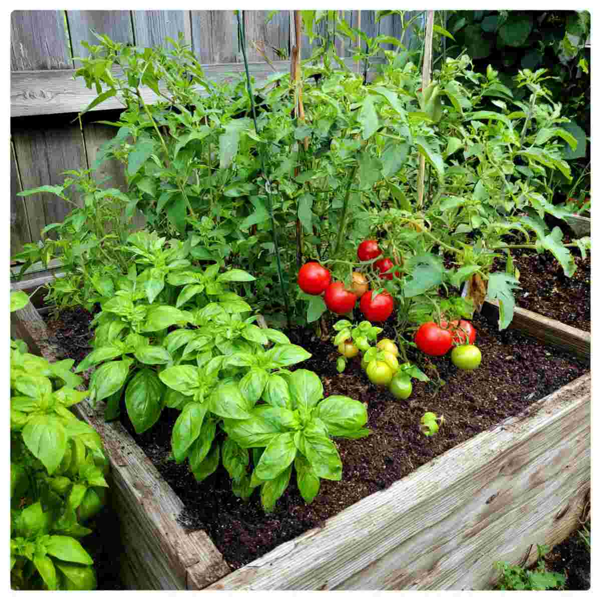 Pairing tomato squares with basil squares makes for a flavorful and productive design.