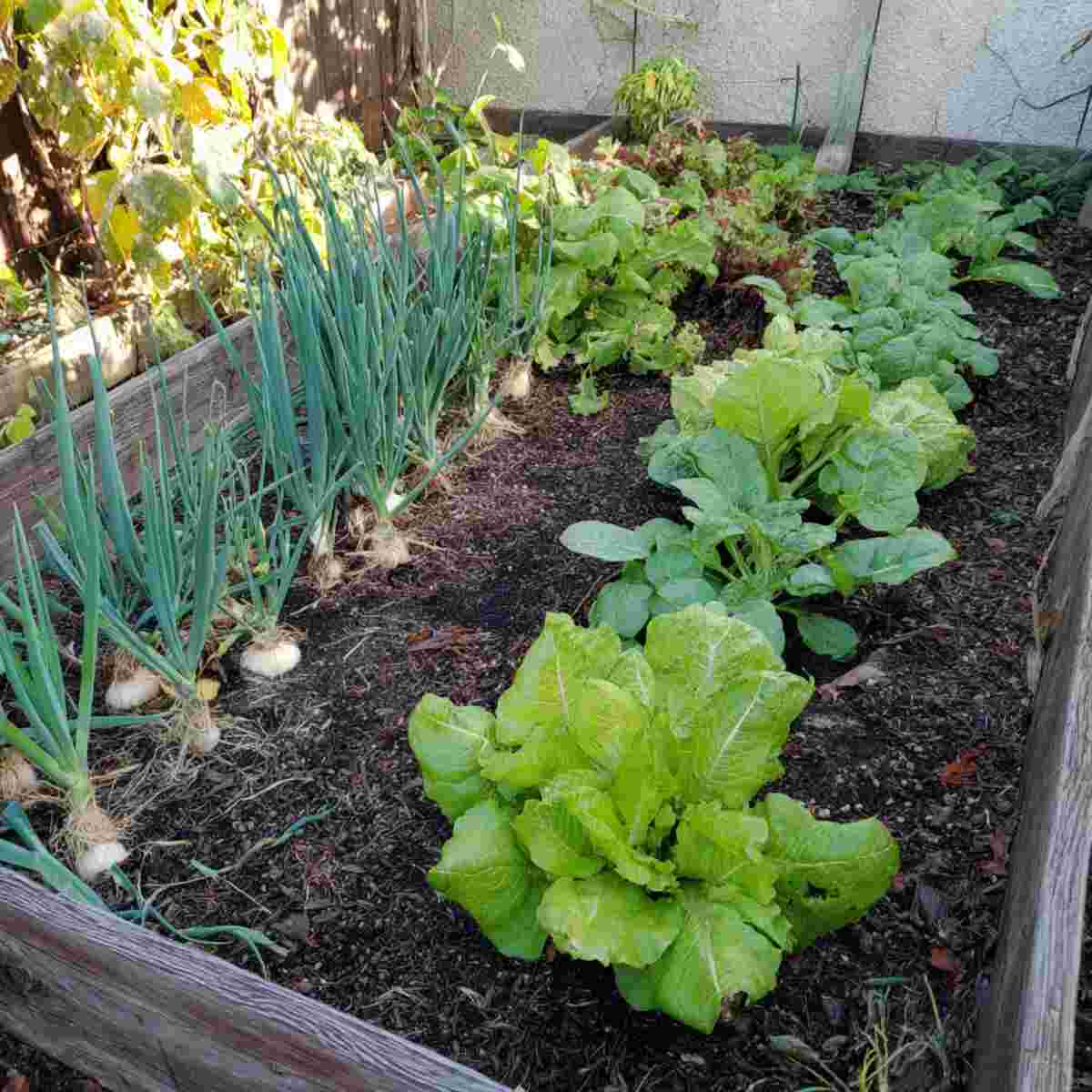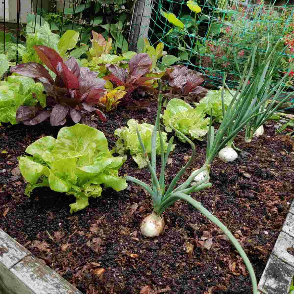Planting garlic, onions, and leeks alongside lettuce and spinach creates a functional mix.