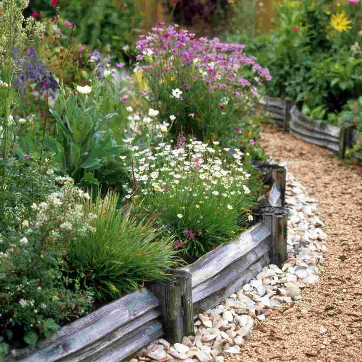 Edging barriers, made from stones, metal, or timber, help contain soil within garden beds on slopes.