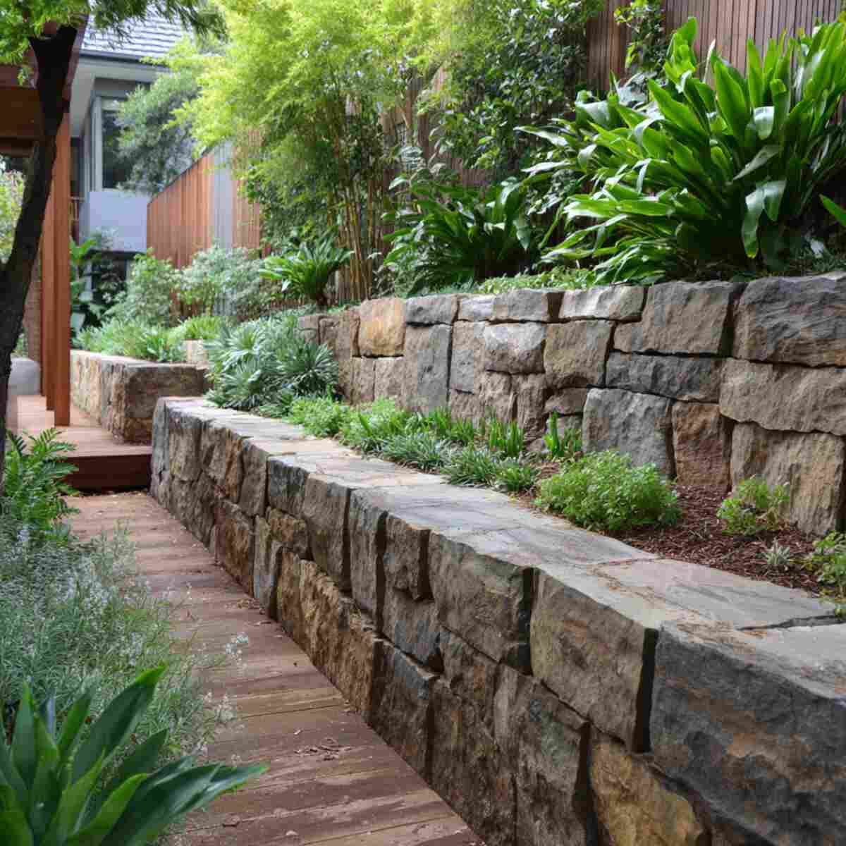 Retaining walls hold back soil and prevent it from sliding downhill during heavy rain, making them an essential choice for Preventing Soil Erosion on Slopes Garden Ideas.