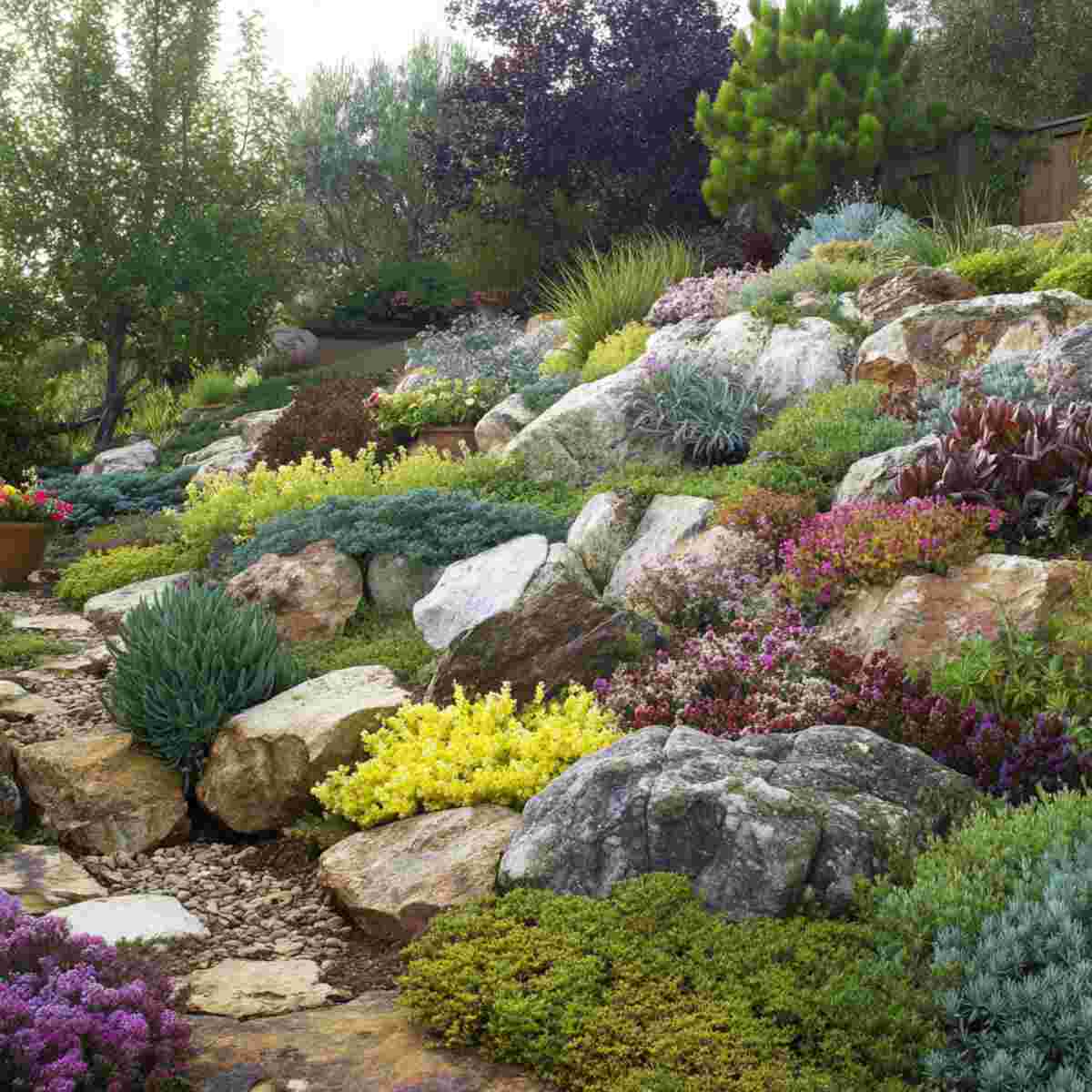 Rock gardens combine decorative stones and hardy plants to create a beautiful yet erosion-resistant landscape.