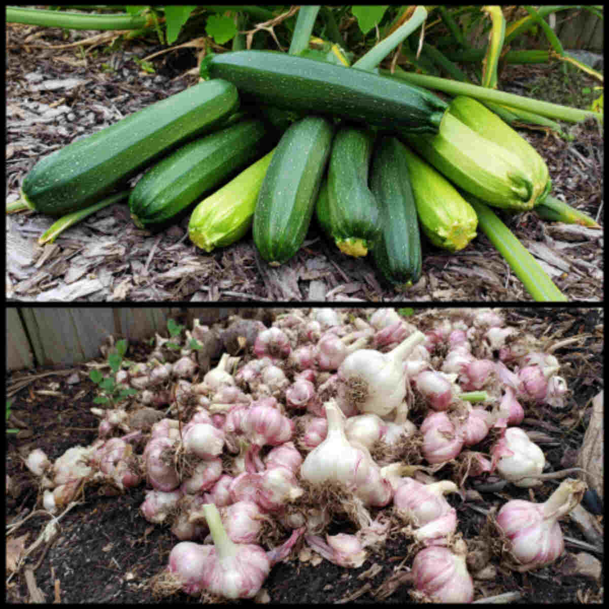 Garlic is typically ready to harvest by early summer, freeing up valuable garden space. Once the bulbs are pulled, you can plant zucchini, which quickly takes over and thrives in the warm season.