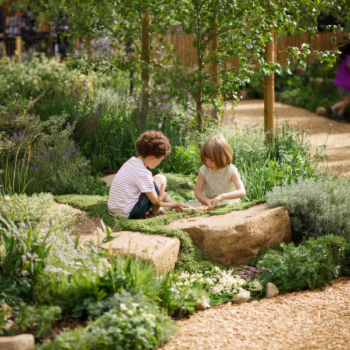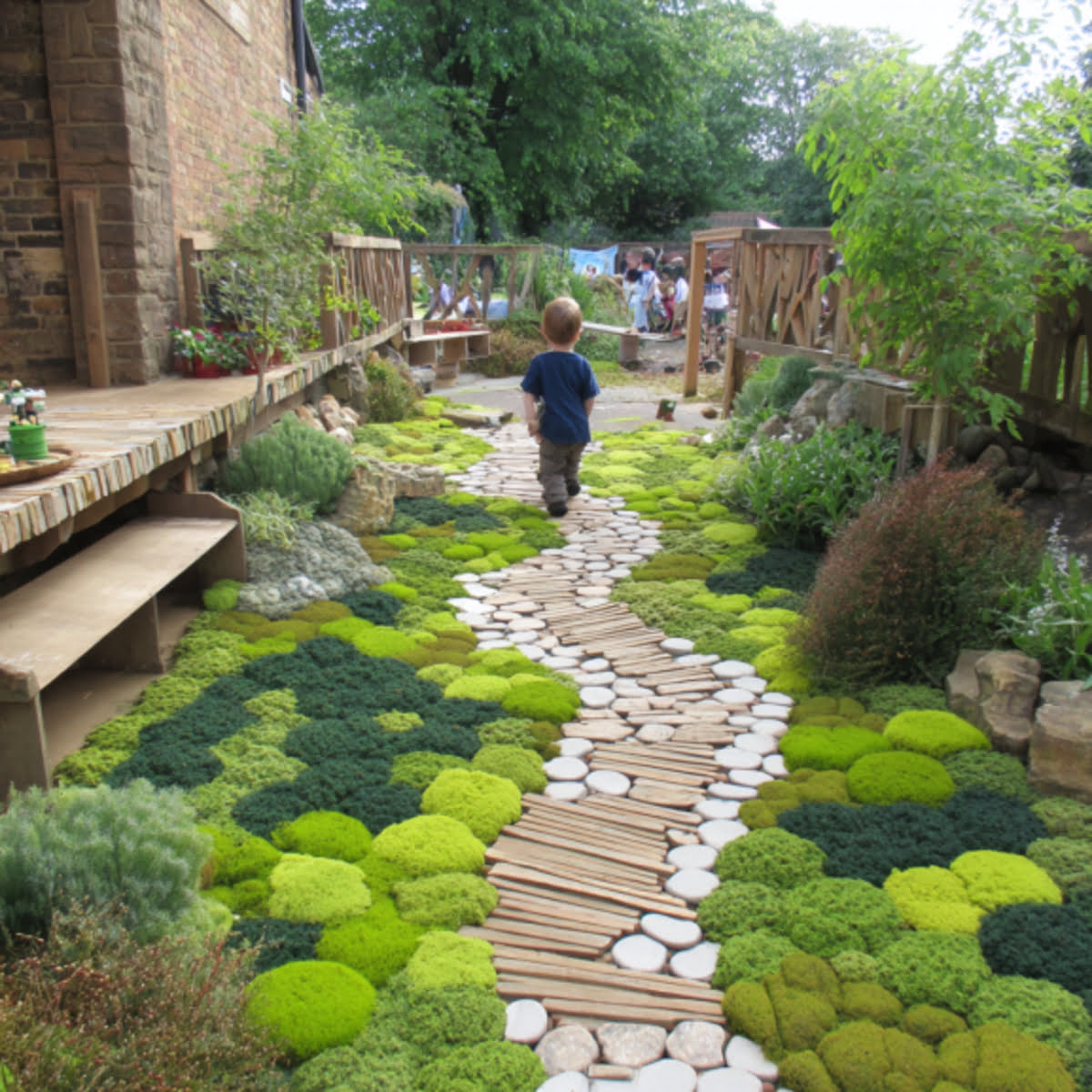 A mossy spot in the garden creates a soft, cushiony space that children can touch and explore.