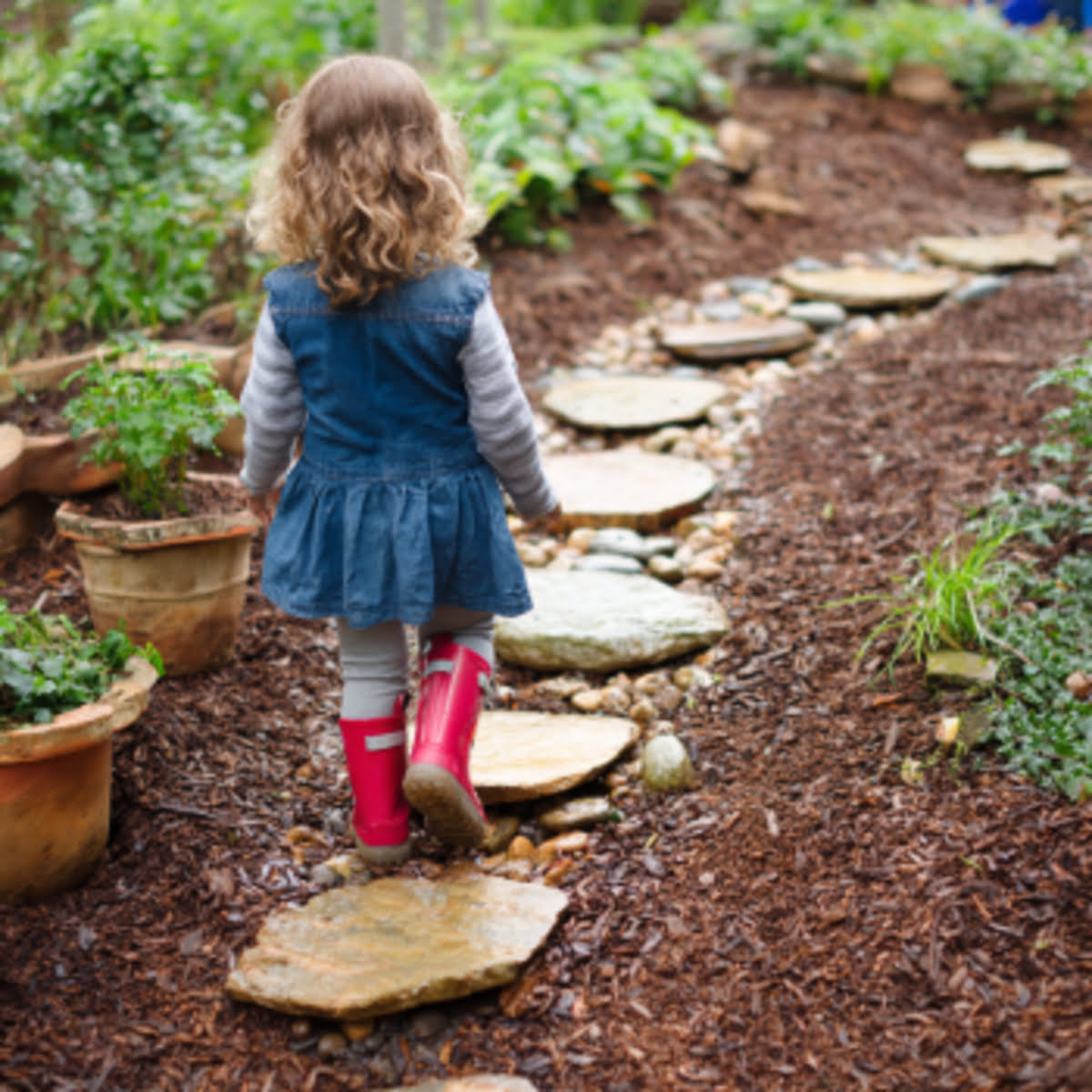 Children can feel the changing textures under their feet and learn balance as they hop from stone to stone. This simple idea is a wonderful way to bring tactile play into the garden.