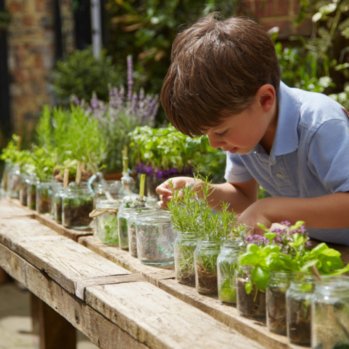 Planting herbs in pots at child height lets them touch and smell leaves anytime they like. Kids can rub the leaves of basil, lavender, or mint between their fingers to explore both texture and scent.