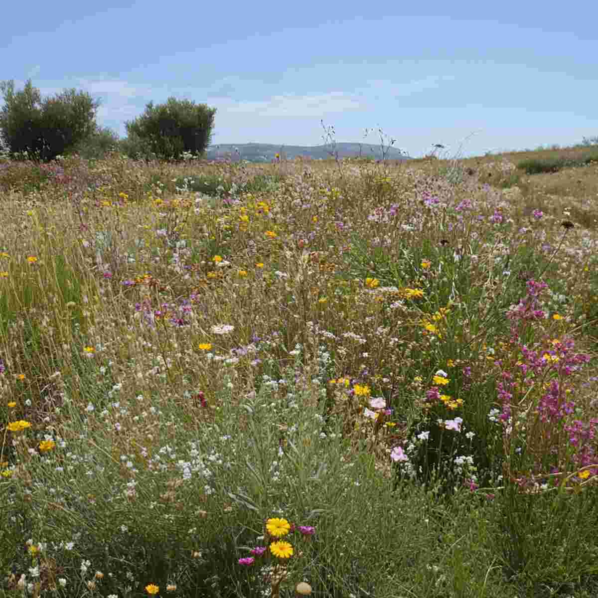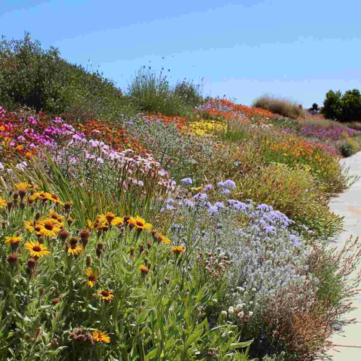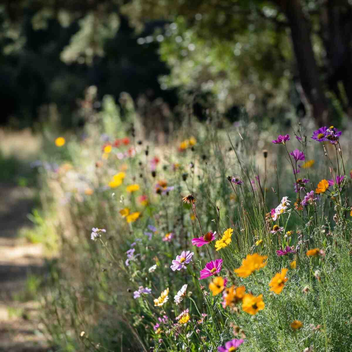 This Wildflower Meadow Strip Garden Idea uses drought-tolerant wildflowers suited for hot, dry climates.