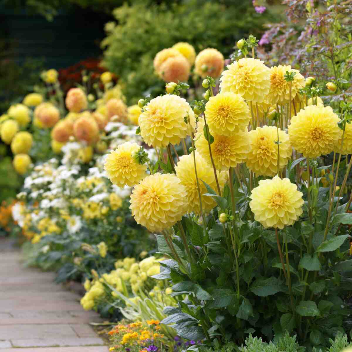 Dahlias in yellow shades are showstoppers with their intricate blooms.