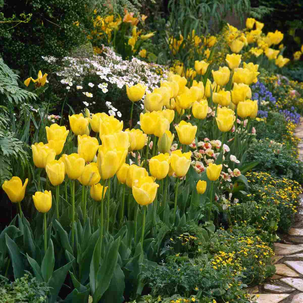 A bed of yellow tulips adds elegance and simplicity to your garden design.