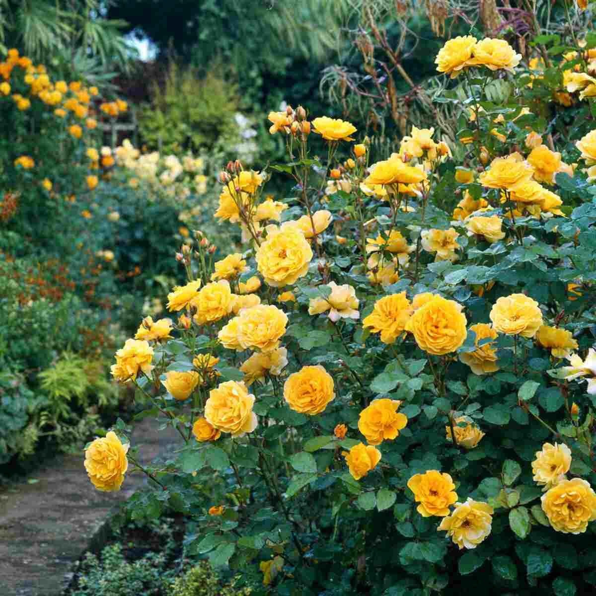 A corner dedicated to yellow roses adds romance with a sunny twist. This is one of the most timeless Yellow Flowers Garden Ideas, as roses symbolize warmth and friendship when in yellow shades.