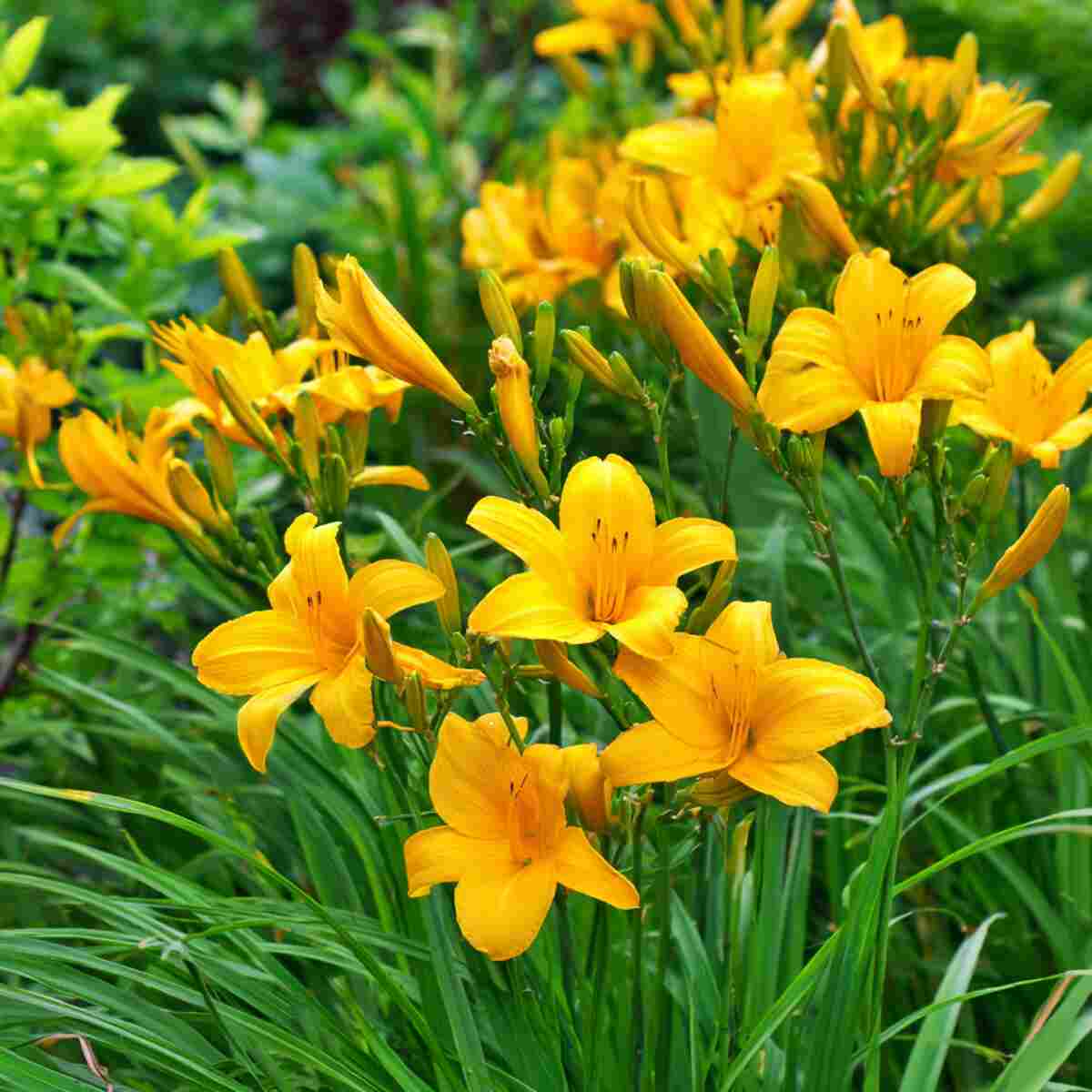 Daylilies offer bursts of golden-yellow color that can bloom repeatedly throughout the season.
