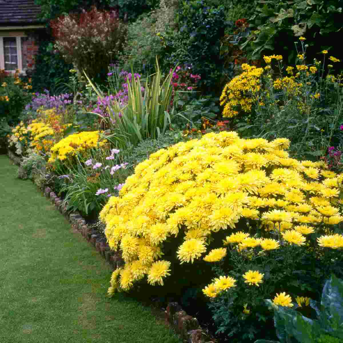 Chrysanthemums bloom in late summer to fall, giving your garden long-lasting yellow tones.